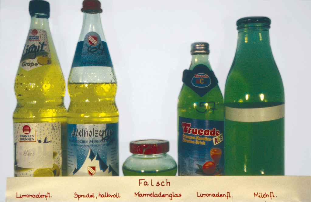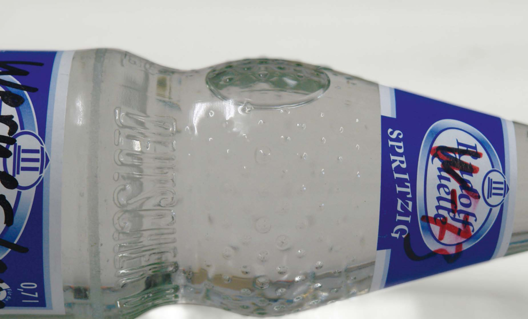In der Regel wird für die Durchführung einer chemischen Fischwasseranalyse mindestens 0,7 Liter des Probenwassers benötigt. Als Probengefäß eignen sich dicht verschließbare Glas- (z. B. Mineralwasserflaschen, keine Limo- oder Saftflaschen, Gurken- oder Marmeladengläser; siehe Abb. 1) oder gut gereinigte Plastikflaschen, die auch vorher Mineralwasser beinhalteten (Abb. 2). Es ist darauf zu achten, dass auch die Verschlüsse frei von anhaftenden Fremdstoffen sind.