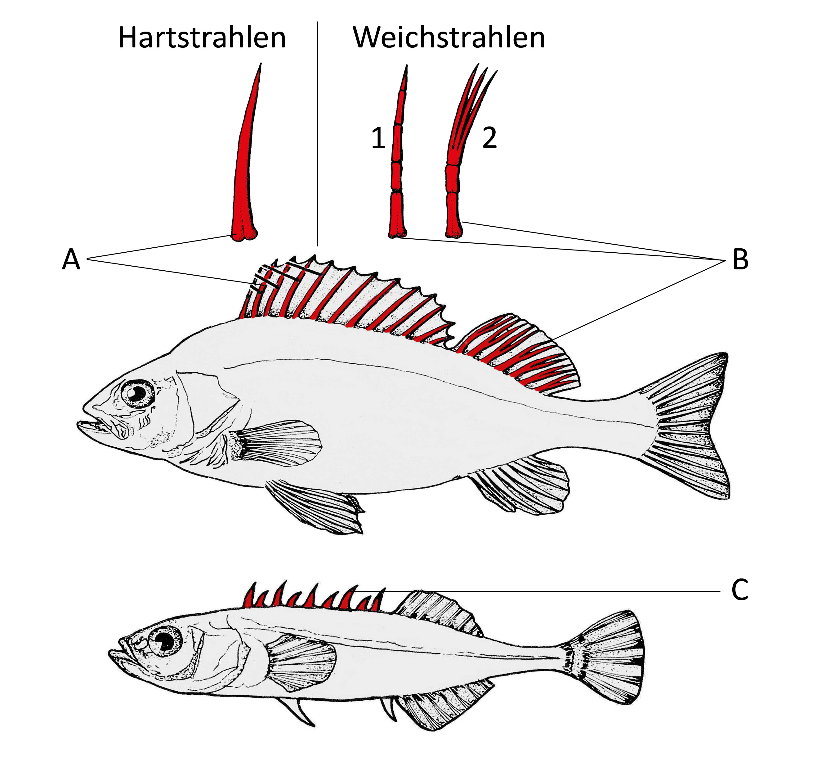 Weichstrahlen können Fieder- oder Gliederstrahlen sein.