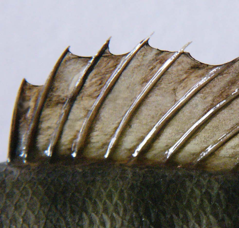 Sägestrahl: Der erste Hartstrahl in der Rücken- und/oder Afterflosse, der am Hinterrand bezahnt ist. Er kommt bei Karpfen, Karausche, Giebel und Barbe vor.