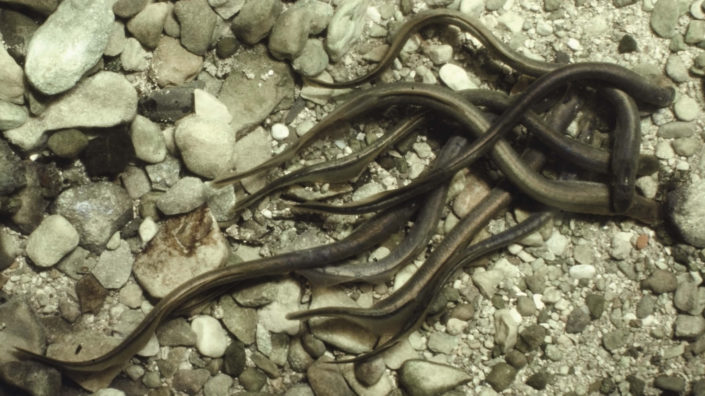 Rückenflossen, Schwanz- und Afterflosse: miteinander verbunden, als geschlossener Flossensaum