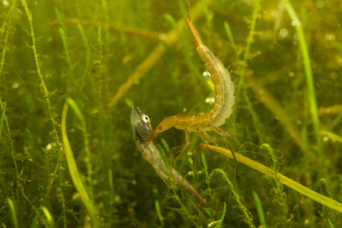 | Lebensraum: | bevorzugt flache Ufergebiete in stehenden und langsam fließenden klaren Gewässern mit pflanzenreichem Ufer |