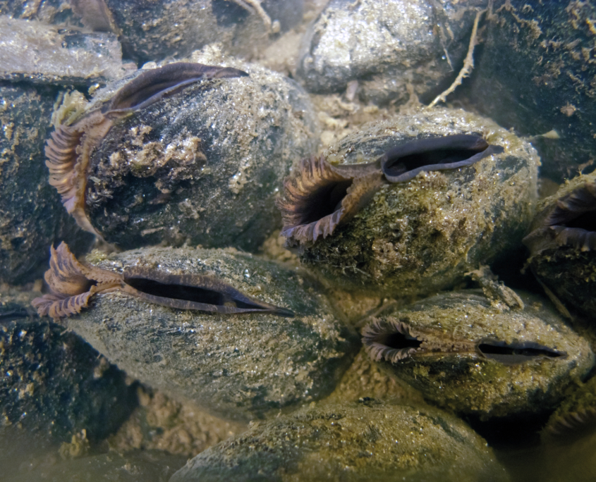 Innerhalb von 3 – 4 Wochen entwickeln sich Muschellarven (Glochidien), diese gelangen von der Muschel ins Wasser.