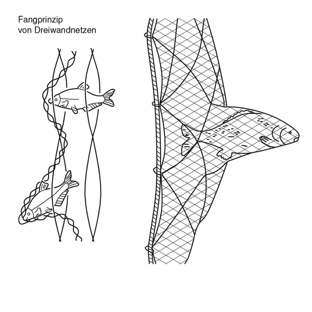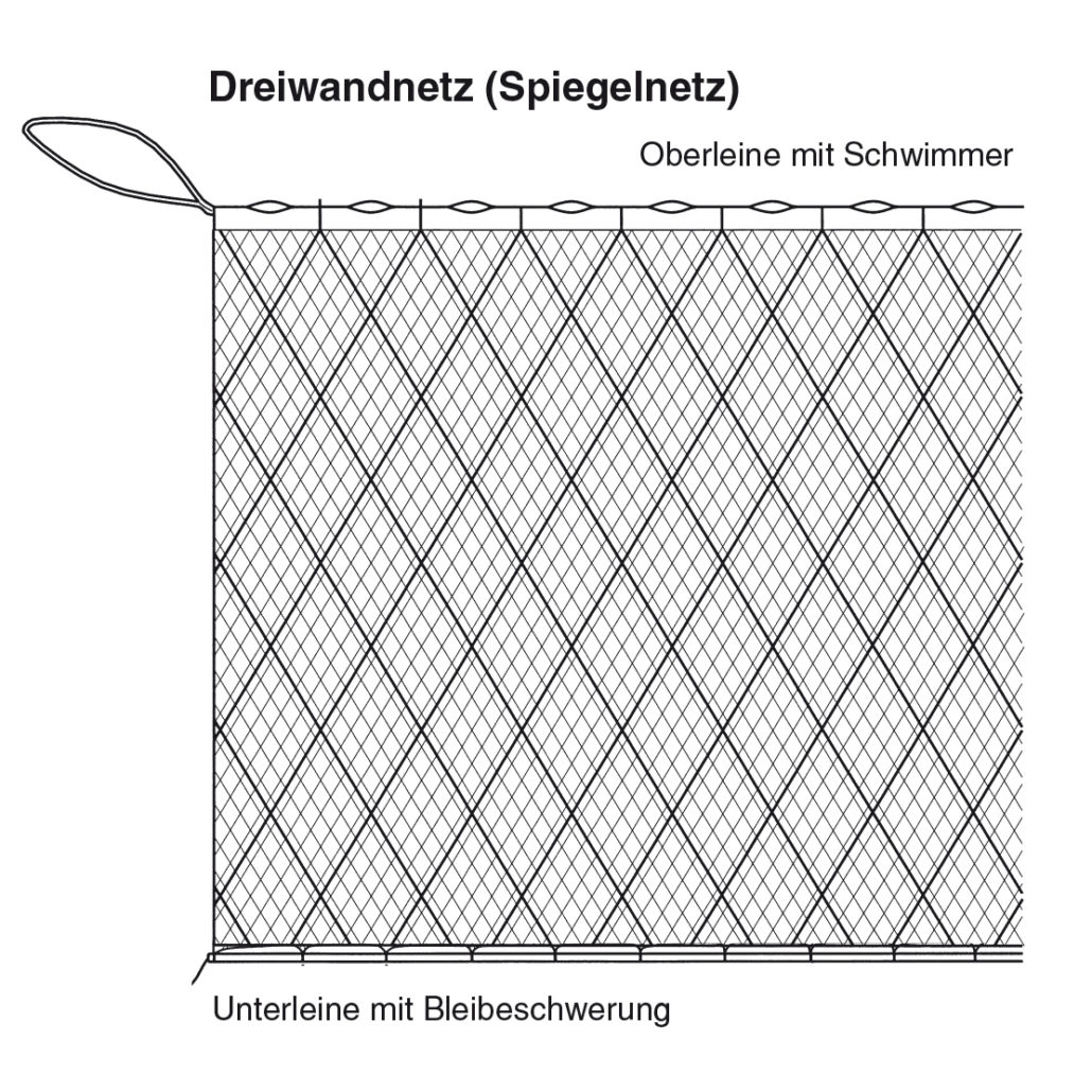 Dreiwandnetze bestehen aus einem lose eingearbeiteten Innengarn (in der Regel 2- bis 3-mal so hoch wie Außengarn) und 2 großmaschigen Außengarnen, deren Maschen gut aufeinander passen müssen (sich spiegeln = Spiegelnetz). Will ein Fisch das Netz durchschwimmen, nimmt er das lose Innengarn mit und fängt sich in dem sich bildenden Netzbeutel. Spiegelnetze können sowohl als passive als auch als aktive Fanggeräte eingesetzt werden.