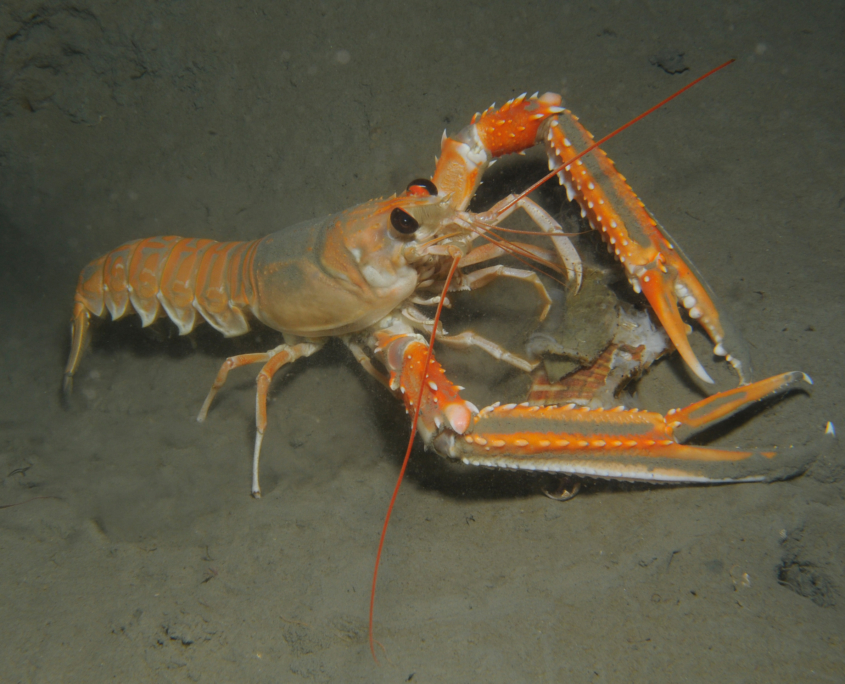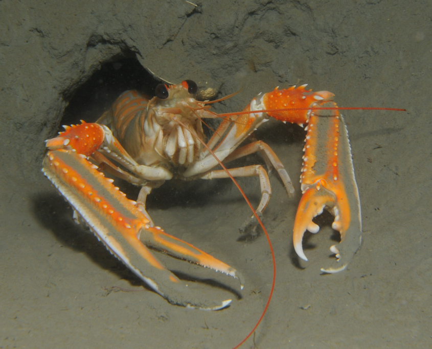 Der Norwegische Hummer lebt in 20 – 800 m Tiefe auf weichen Böden.