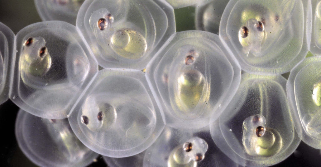 | Laichablage: | Laichbänder an Steinen, Wasserpflanzen, Wurzeln |