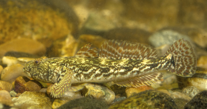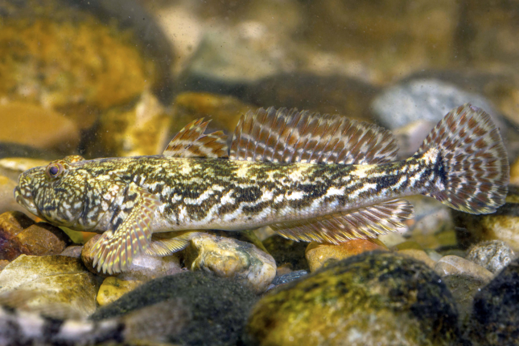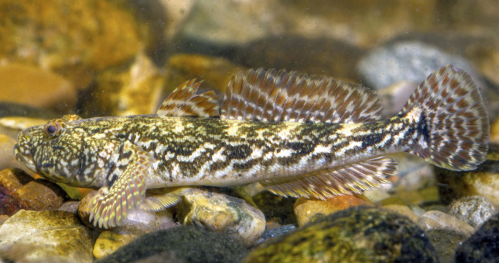 | Färbung: | Grundfärbung meist hellbraun oder hellgrau, mit vielen dunklen Flecken, diese oft zu Querbändern oder einer Marmorierung verbunden. Milchner in der Laichzeit dunkelgraues bis schwarzes Laichkleid. |