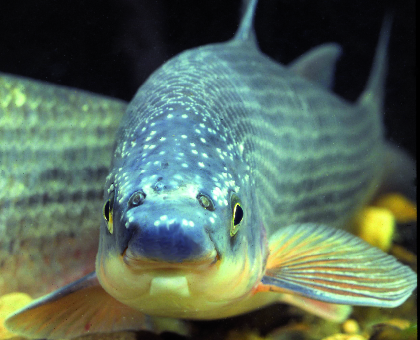 | Nahrung: | Aufwuchs und Bewuchs (schabt mit den scharfkantigen Lippen den Algenbelag von Steinen) |