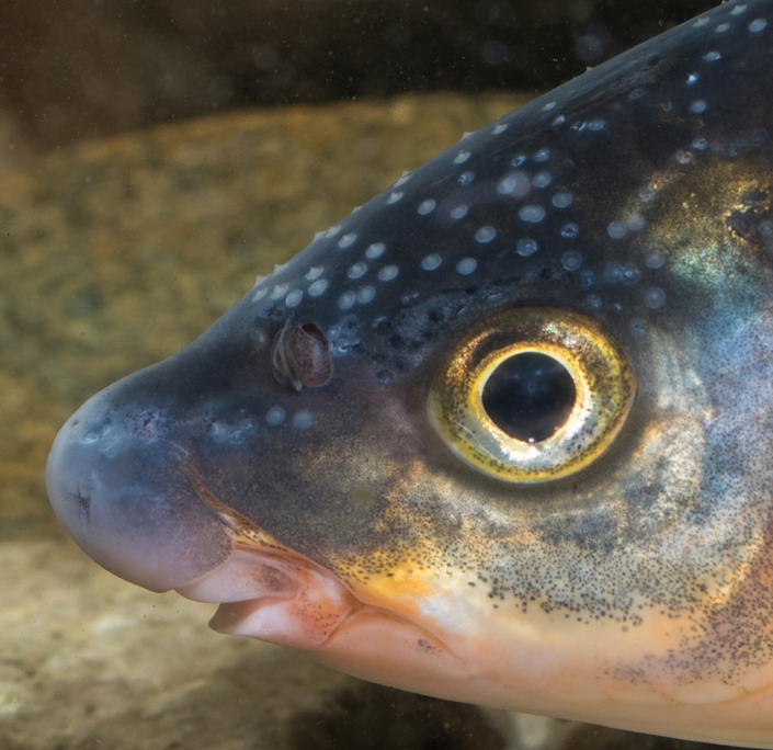 | Besonderheit: | Männchen und Weibchen zur Laichzeit mit Laichausschlag |